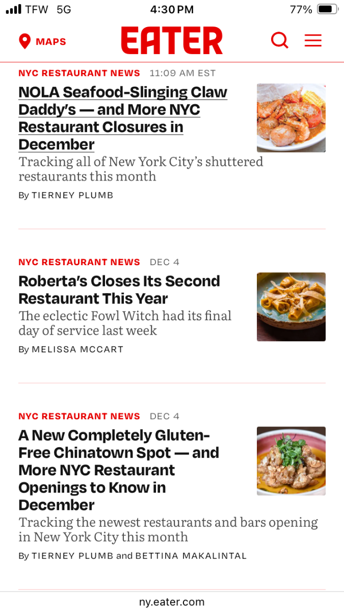 RIP. I see Eater corrected the spelling of the restaurant within the body of the news item, but not everywhere...