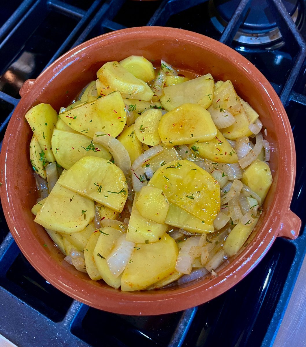 MitchW Posted August 7, 2025 Posted August 7, 2025 Spanish-inspired potatoes, with onions, garlic, pimentón, saffron, chicken stock. Braised on the stove until nice and creamy. Served with: Crispy-skinned roast chicken thigh and sautéed escarole. Covering many countries. Market nectarine and assorted plum crisp. 1 Quote