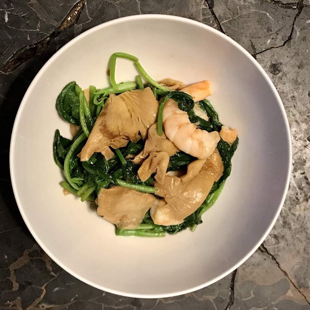 small h Posted August 30, 2025 Author Posted August 30, 2025 Yu choy, pink oyster mushrooms, shrimp. Very happy that the yu choy cooked down so much that I could just eat it all. Quote