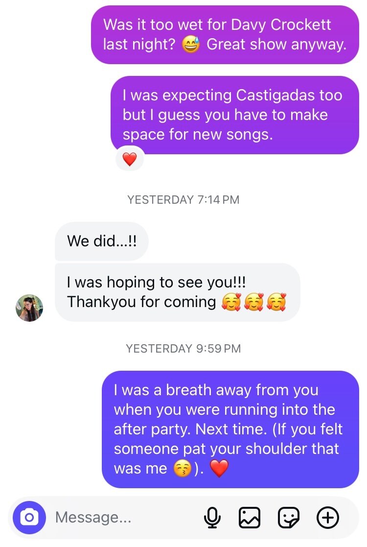Wilfrid Posted September 25 Author Share Posted September 25 Well that was a wet one, with the rain sweeping in just before the start of the set. Very little overhead coverage on the Elsewhere Rooftop. But they just get better and better. More videos on IG. IMG_1909.mov Quote Link to comment Share on other sites More sharing options...